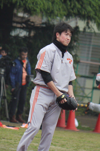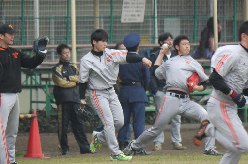 巨人の選手が最後の練習に出てきたところを写真。